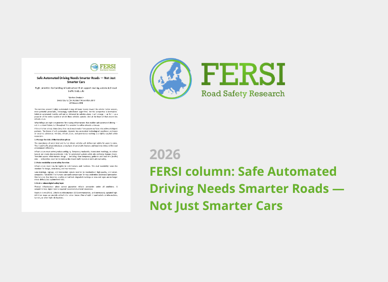 In a new column, FERSI member Markus Deublein from the Swiss Council for Accident Prevention (BFU) argues that safe automated driving cannot be achieved by smarter vehicles alone. Drawing on…